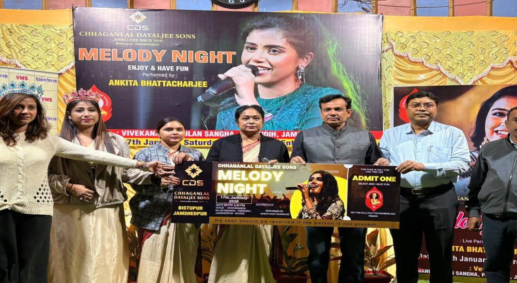 JAMSHEDPUR : जमशेदपुर के परसुडीह में विवेकानंद मिलन संघ क्लब की ओर से 17 जनवरी को क्लब परिसर में एक भव्य संगीत संध्या का आयोजन किया जा रहा है। इस विशेष अवसर पर सारेगामापा 2019 की विजेता एवं लोकप्रिय पार्श्व गायिका अंकिता भट्टाचार्य अपनी मधुर आवाज़ से श्रोताओं को मंत्रमुग्ध करेंगी। कार्यक्रम को लेकर शहर के संगीत प्रेमियों में खासा उत्साह देखने को मिल रहा है। आयोजकों के अनुसार यह संध्या शास्त्रीय, सुगम और फिल्मी गीतों का सुंदर संगम होगी, जिसमें हर आयु वर्ग के श्रोताओं को संगीत का आनंद मिलेगा।